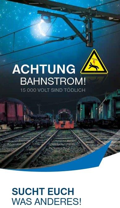 Jedes Jahr kommt es zu tragischen Unfällen, bei denen Menschen durch den Kontakt mit den stromführenden Oberleitungen schwer verletzt oder gar getötet werden. Bahnstrom führt eine Spannung von 15.000 Volt – ein einziger Kontakt oder die bloße Annäherung kann einen tödlichen Stromschlag auslösen.