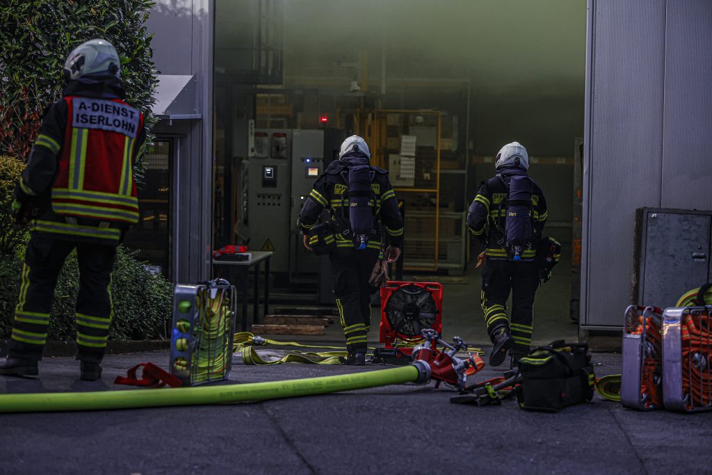 Umgehend wurden der Löschzug der Berufsfeuerwehr sowie die Löschgruppen Ober- und Untergrüne alarmiert. Bereits auf der Anfahrt zur Einsatzstelle war deutlich eine Rauchentwicklung über dem Firmenkomplex zu sehen. Vor Ort ergab die Erkundung, dass die Produktionshallen stark verraucht waren und es vermutlich im inneren einer Absauganlage brannte.