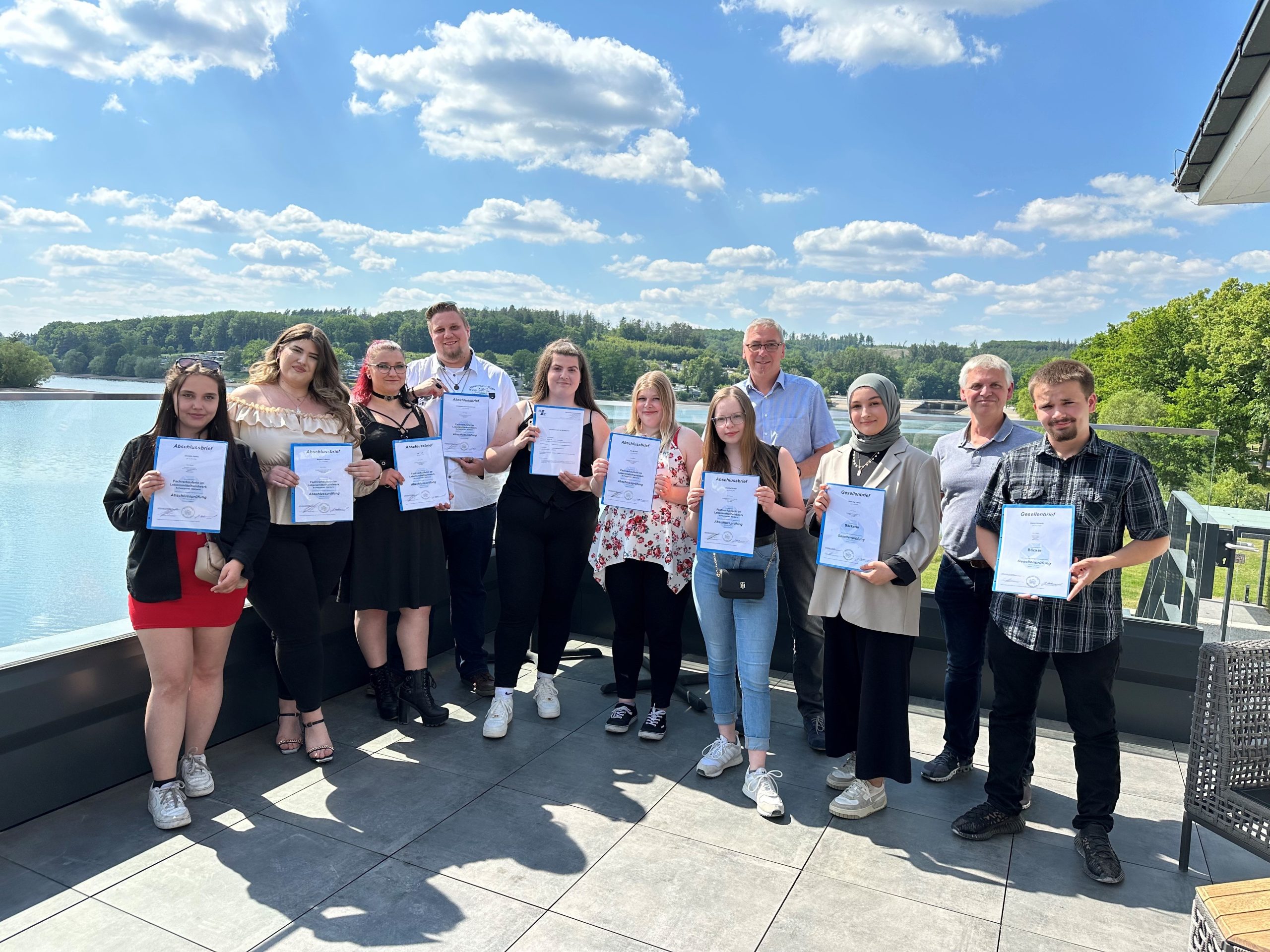 Vor der idyllischen Kulisse des Sorpesees im Restaurant Heimathafen der Goldbäckerei Grote aus Balve, konnten die erfolgreichen Auszubildenden im Bäckerhandwerk des Märkischen Kreises ihre Abschluss- und Gesellenbriefe entgegennehmen. Bevor die Absolventen jedoch durch Lehrlingswart Carsten Ashauer, Innungsgeschäftsführer Jens Rodermund sowie den zuständigen Fachlehrern der Berufskollegs ihre Zeugnisse überreicht bekamen, ließ Jens Rodermund für den entschuldigt fehlenden Obermeister Jörg Voss drei …