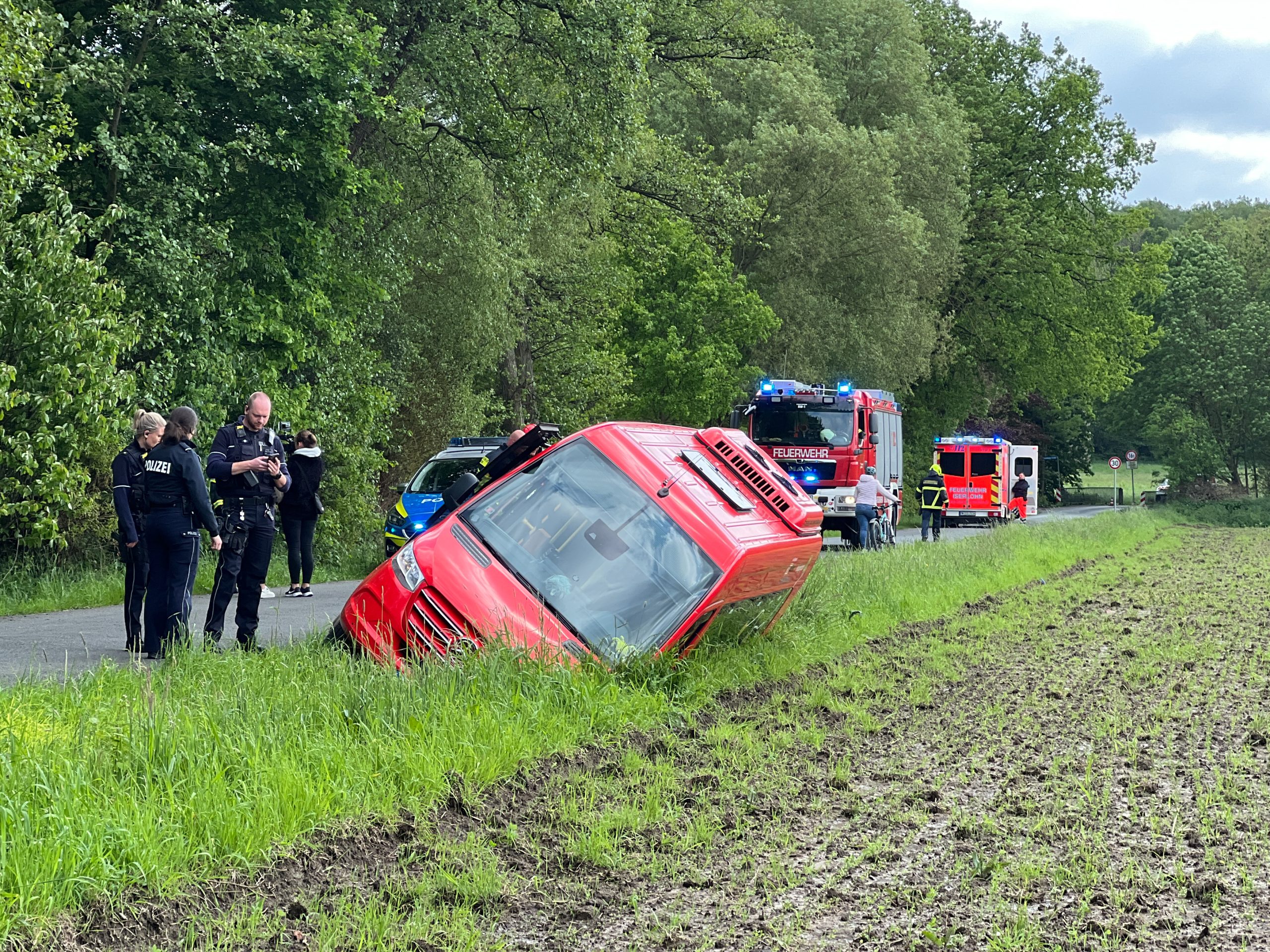 Iserlohn. (ots) Durch den elektrischen Notruf eines Mercedes Sprinter wurde die Berufsfeuerwehr Iserlohn um kurz nach 17 Uhr in die Eichelberger Straße alarmiert. Dort verlor die Fahrerin eines Kleinbusses durch einen internistischen Notfall die Kontrolle über ihr Fahrzeug und landete im Graben. Bis zum Eintreffen der Feuerwehr betreuten Ersthelfer die Fahrerin, da ein Aussteigen aufgrund der Schräglage nicht möglich war. …