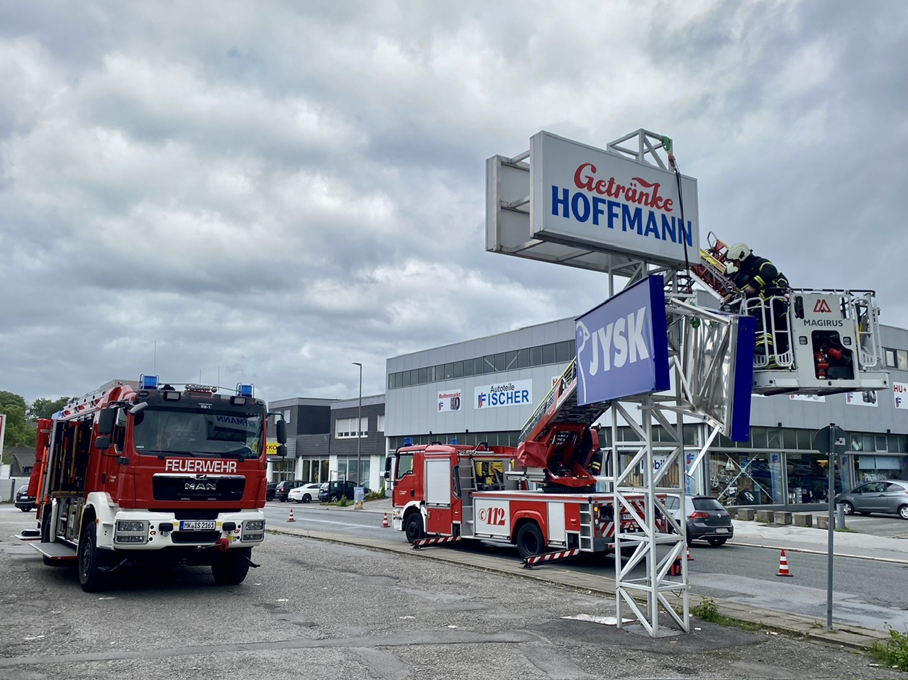 Iserlohn. (ots) Am heutigen Vormittag wurde die Feuerwehr Iserlohn um 11:26 Uhr durch die Polizei zur Raiffeisenstraße gerufen. Dort hatte der Fahrer eines LKWs die Leuchtreklame eines Fachmarktes beschädigt. Die Werbetafeln hingen nur noch an einzelnen Befestigungselementen und drohten abzustürzen. Mit Hilfe der Drehleiter, eines Flaschenzuges sowie einer Säbelsäge wurde die Leuchtreklame demontiert und sicher zu Boden gebracht. Nach 60 …
