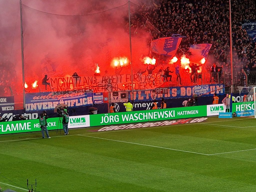 Unschöne Pyroszene im Bochumer Block vor Spielbeginn – © Sportfoto-Sale (MK)