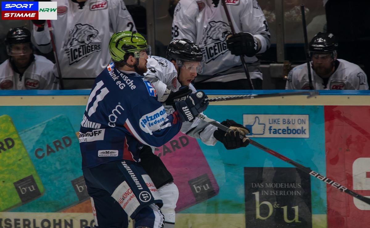 Iserlohn. (MK) Fast jeder DEL-Trainer betont in diesen Tagen geradezu gebetsmühlenartig, dass jedes Spiel nun ein Spiel mit Playoff-Charakter ist. Die Iserlohn Roosters und die Thomas Sabo Ice Tigers unterstrichen diese Aussagen am Freitagabend beim 5:2 Sieg der Roosters eindrucksvoll.
