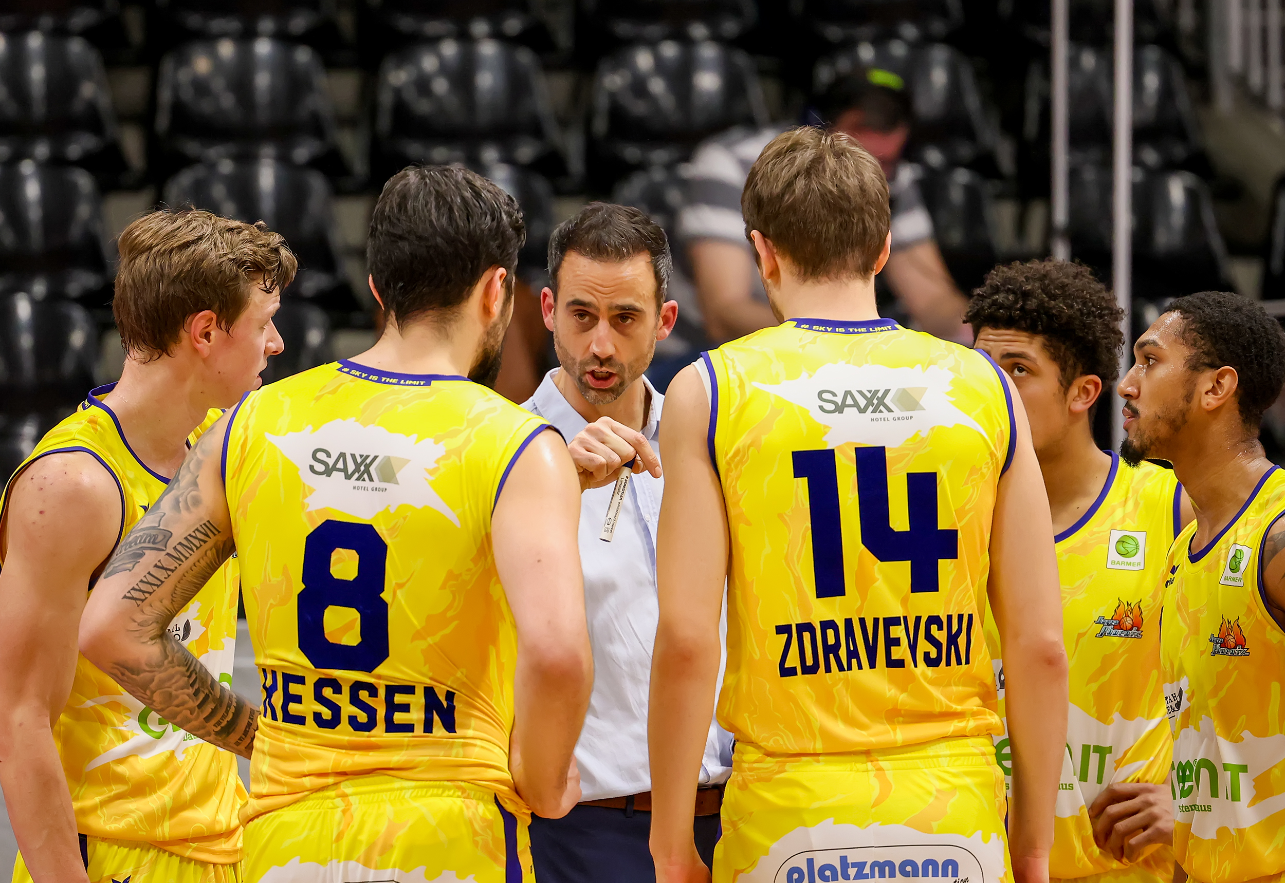 Phoenix-Headcoach Chris Harris: „Das war ein gutes Spiel, weil das Team das umgesetzt hat, was wir uns vorgenommen haben. Wir wollten heute in der Defense gnadenlos switchen, um nicht wieder zu spät in die Pick´n Roll-Defense zu kommen wie am Sonntag – und das hat geklappt. Dass wir