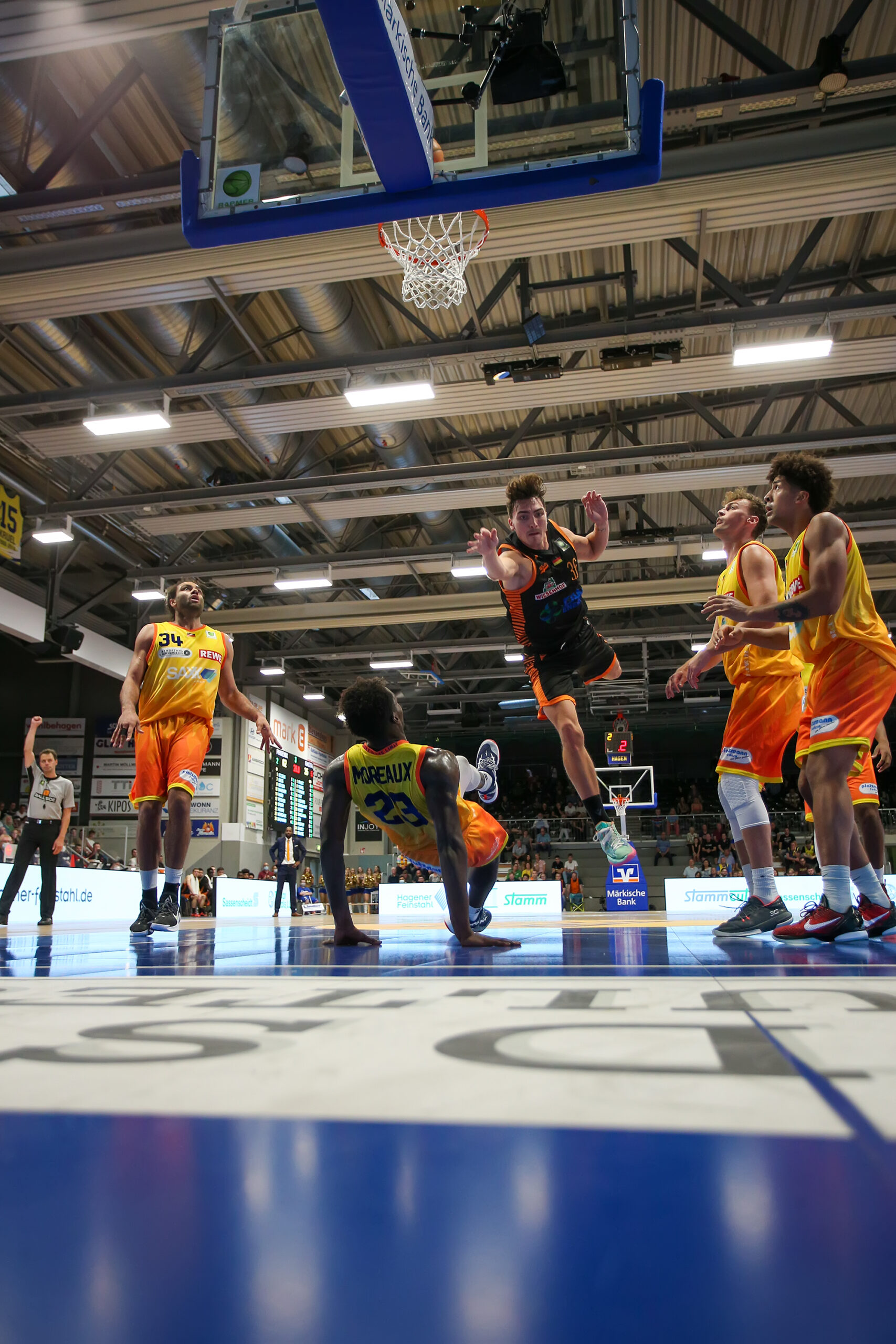 Kristofer Krause (mitte) fliegt in Richtung Phoenix Hagen – © Sportfoto-Sale (JB)