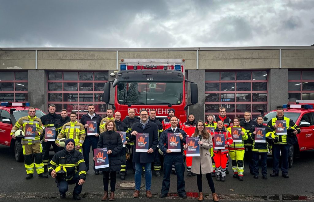 Nicht nur im Brandfall oder Rettungseinsatz nehmen die Einsatzkräfte ihre Pflicht ernst, sie sprechen sich ebenso aktiv gegen Gewalt an Frauen aus und setzen ein klares Zeichen.