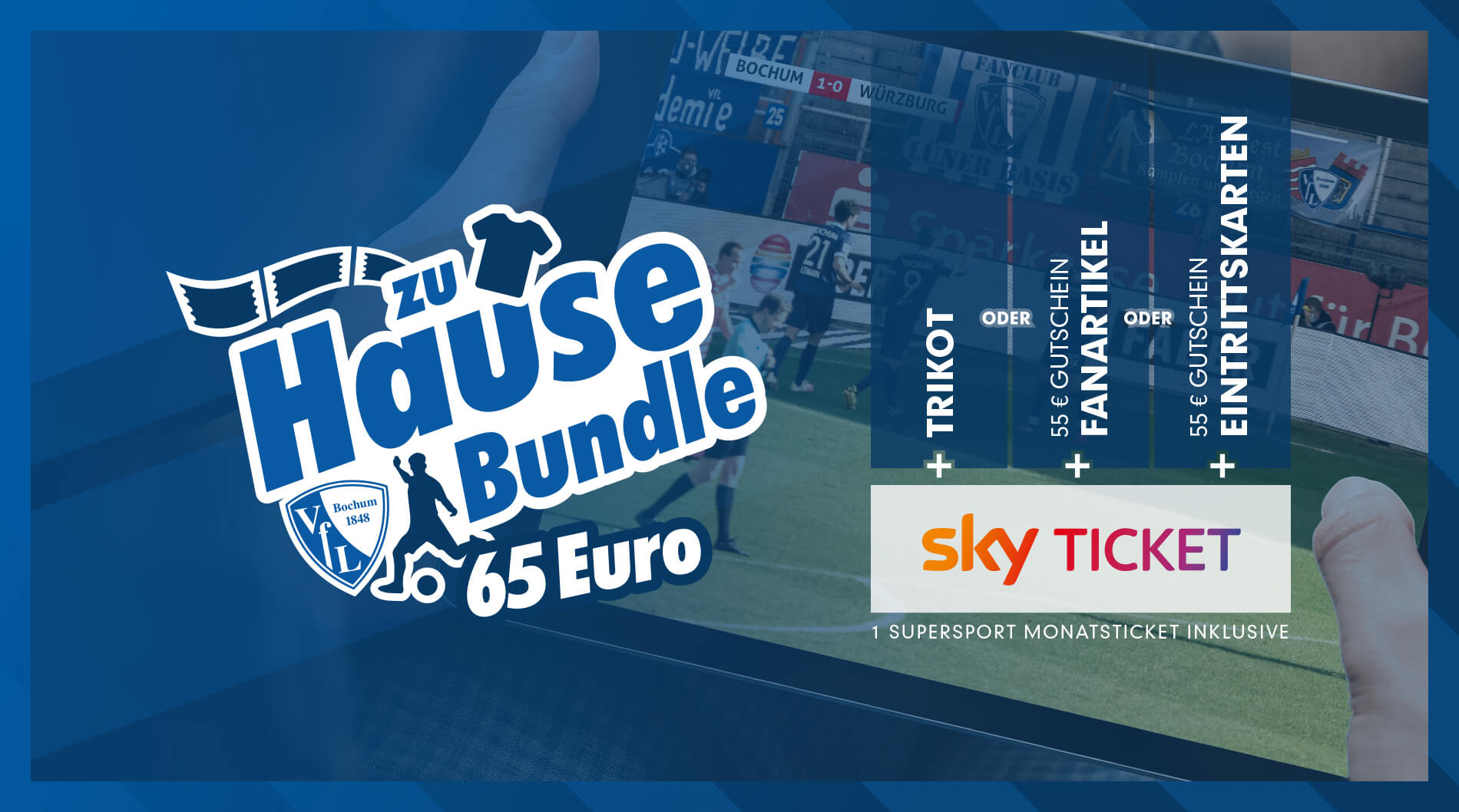 Bochum. (PM VFL) Der VfL Bochum 1848 geht einen neuen Weg mit seinem Medienpartner Sky: Ab sofort starten die Blau-Weißen eine Aktion mit Sky Ticket. Als erster Zweitligist kann der VfL seinen Fans das aktuelle VfL-Trikot oder einen Ticketing- oder Merchandising-Gutschein inklusive eines Sky Supersport Monatstickets anbieten.
